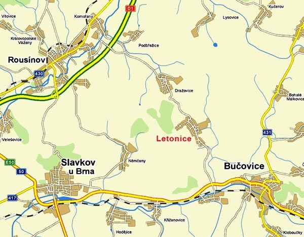 Základní mapa obce Letonice