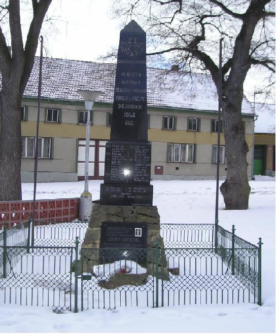 V témže roce vyzval starosta obce Antonín Hanák k vytvoření výboru pro stavbu Památníku padlým ve světové válce. Úkolem výboru bylo sbírkami získat prostředky nutné k realizaci záměru. V roce 1923 bylo za finančního přispění obce započato se stavbou památníku. Pomník byl postaven na návsi proti domu č.p. 67 a 132. Nese znak čs. státu a nápis: „Na památku osvobození čs. národa a padlým spoluobčanům (ve světové válce) věnuje obec“. Následuje seznam všech padlých a nezvěstných. Na podstavci byly umístěny čtyři reliéfy. Pomník byl postaven dne 7. září a slavnostně odhalen 9. září 1923 za účasti všech spolků. Členové Sboru dobrovolných hasičů, Tělocvičné jednoty Sokol,Tělocvičné jednoty Orel se zúčastnili korporativně. Za pěkného počasí a dobré nálady velkého množství občanů zahájil slavnost starosta obce Antonín Hanák, slavnostní řeč přednesl pan řídící učitel Skalička z Letošova. Za místní učitelský sbor promluvil řídící učitel p. Julius Šafařík , který zvláště dětem význam pomníku připomněl a jeho ochranu doporučoval. Za Tělocvičnou jednotu Sokol promluvil p. Jaroslav Paseka, za Tělocvičnou jednotu Orel p. Alois Vrána a za občany p. Alois Hanák. Dále účinkoval pěvecký sbor a kapela.